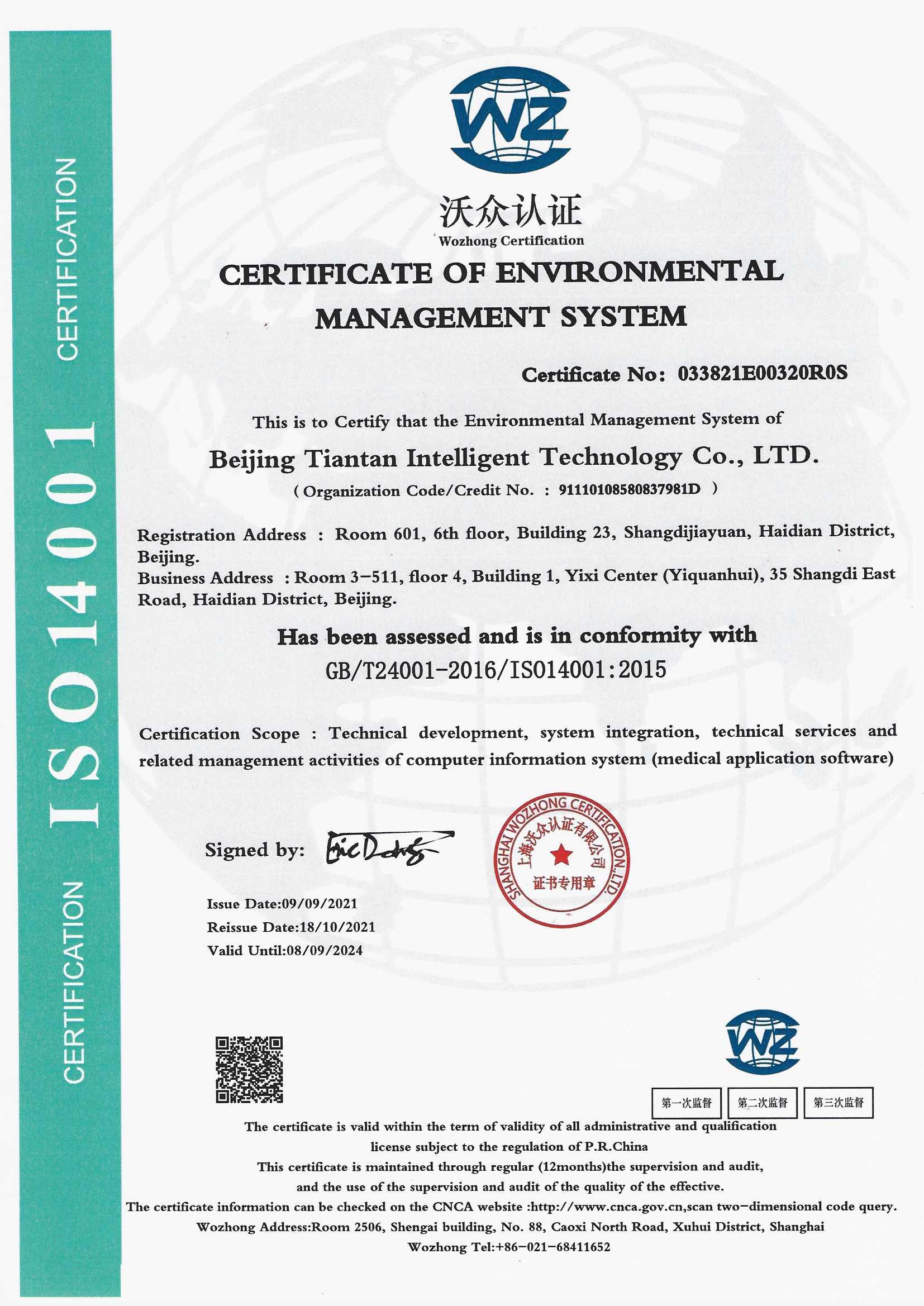 ![]() 環(huán)境管理體系認證證書(中) |