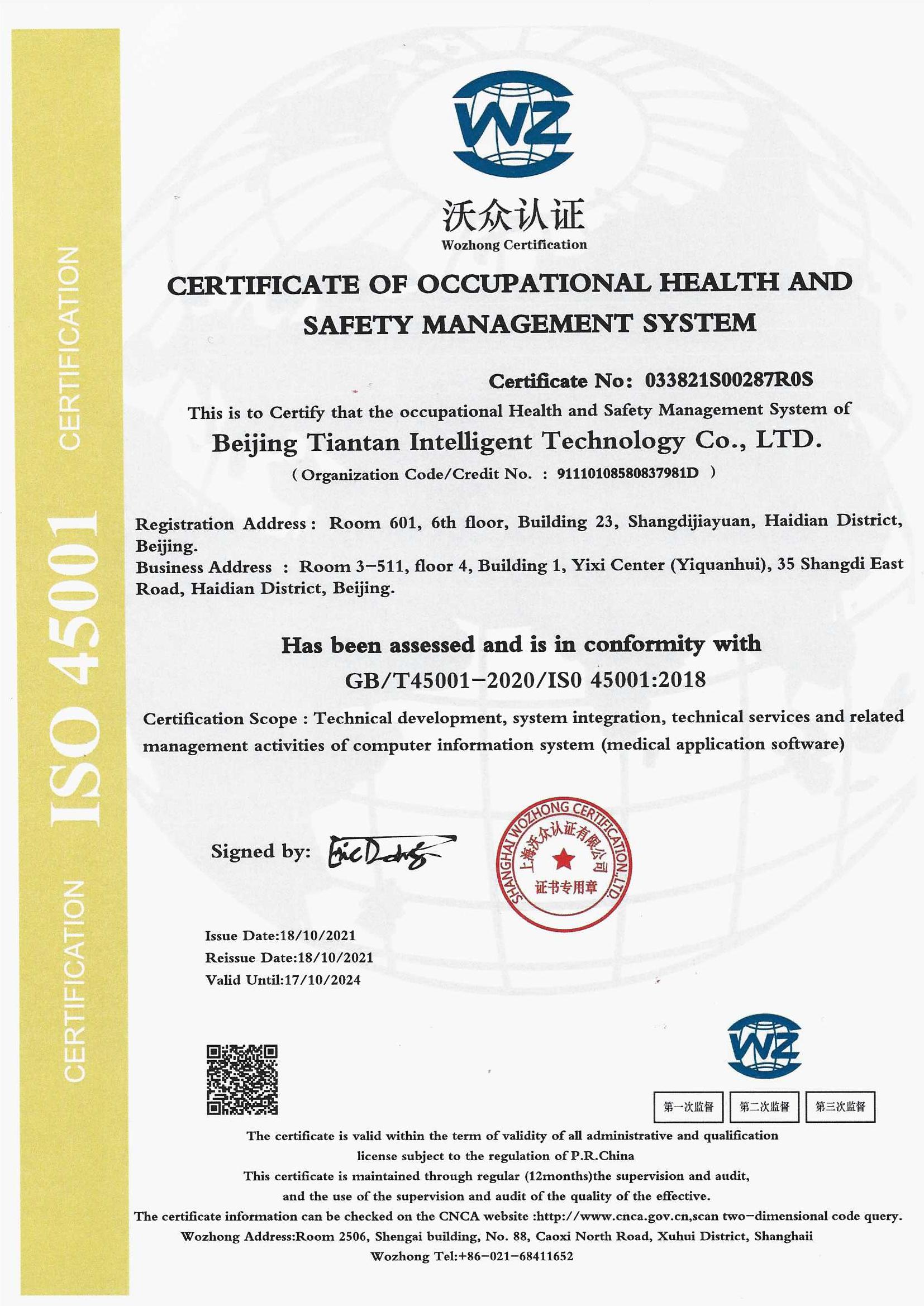![]() 職業(yè)健康安全管理體系認證證書 |