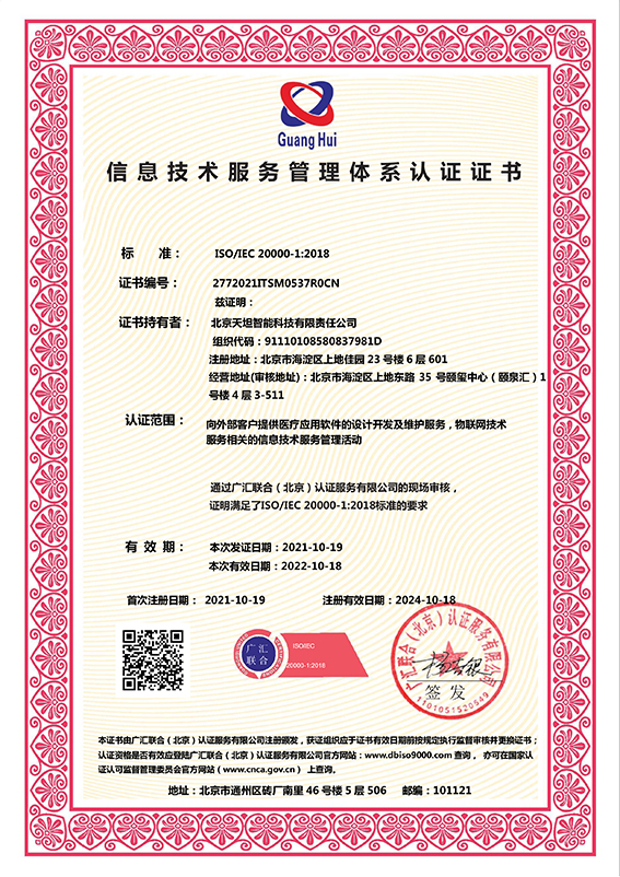 ![]() 信息技術服務管理體系認證證書 |