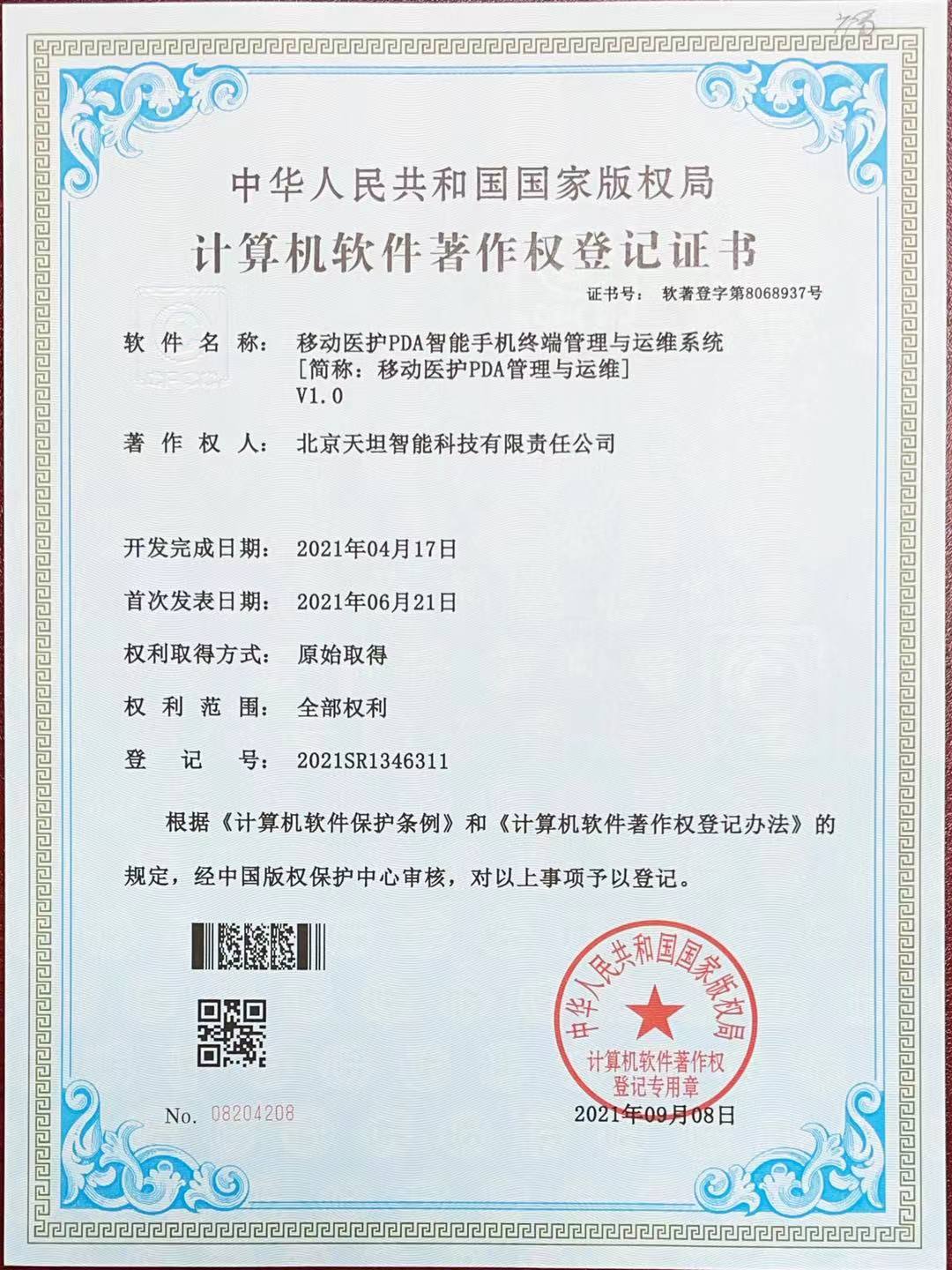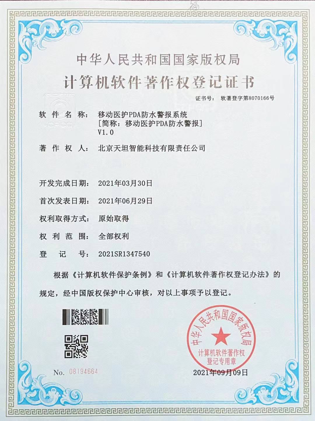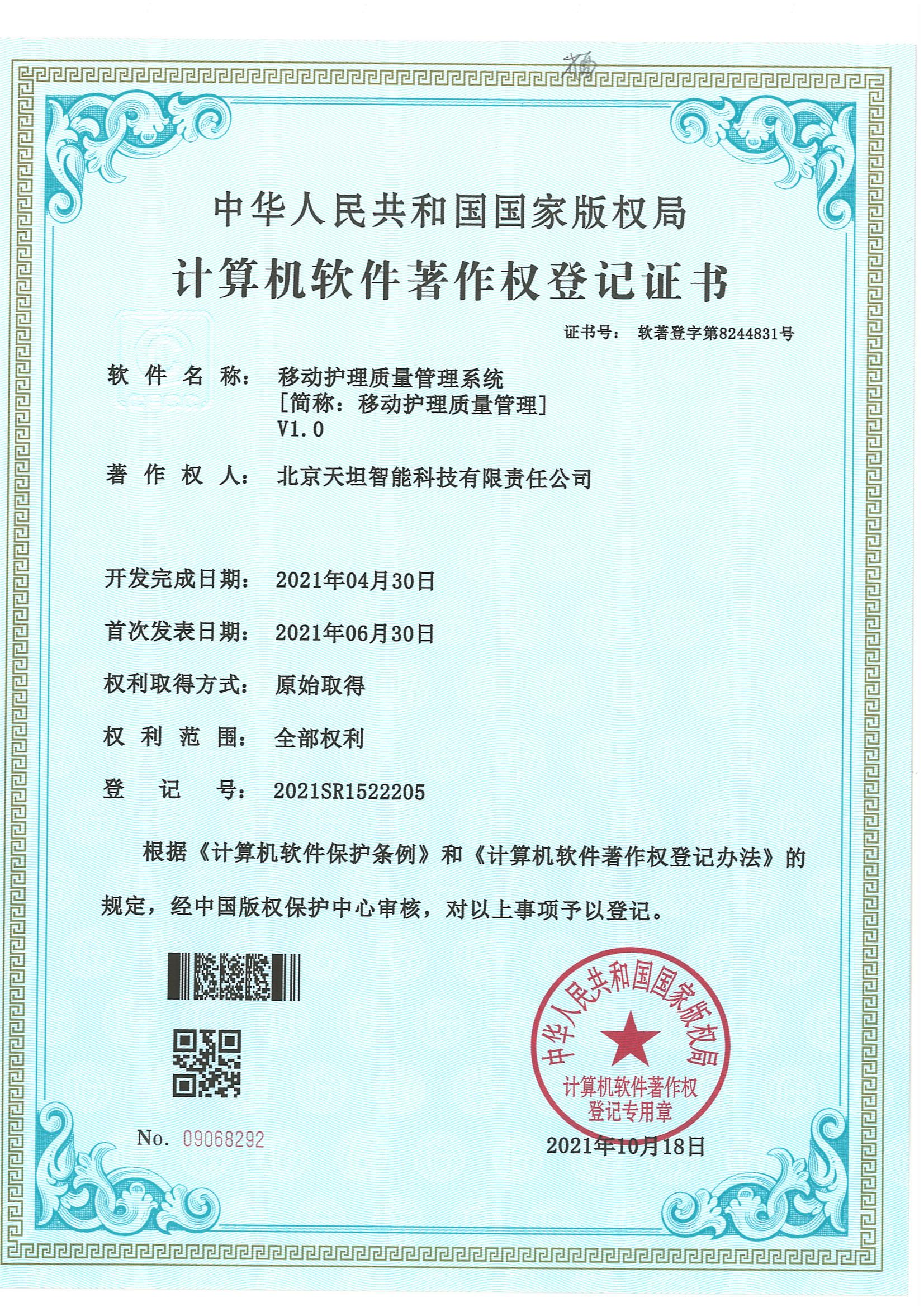 ![]() 軟件產品登記證書 |